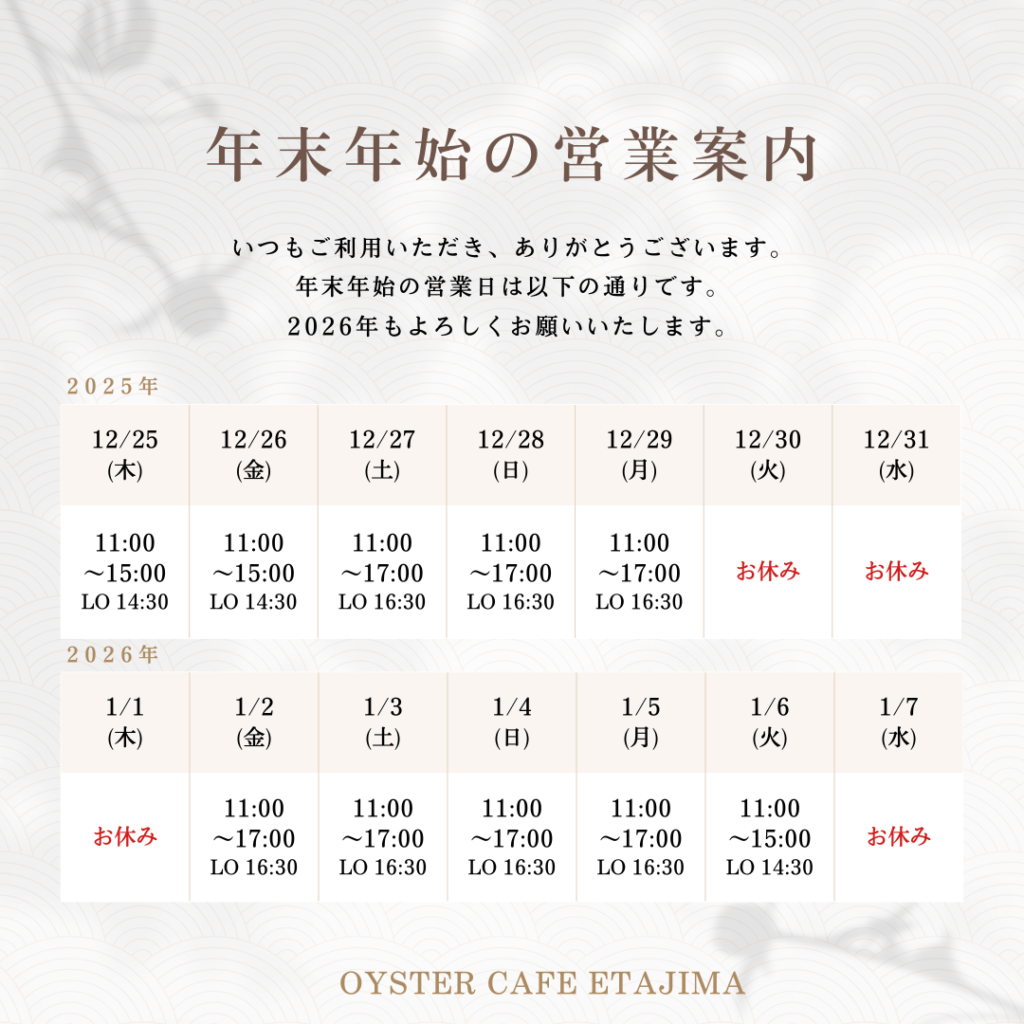 いつもオイスターカフェ江田島をご利用いただき誠にありがとうございます。